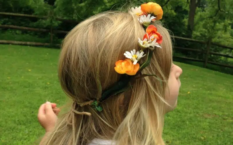 My daughter and I had such a nice experience making this easy, DIY floral headband together. We sat outside, chatting the day away, while we focused on this cute little craft. It took no time at all and was totally stress-free. Of course, she LOVES it, and made her sister one too! It would also make a great gift or children’s party activity.